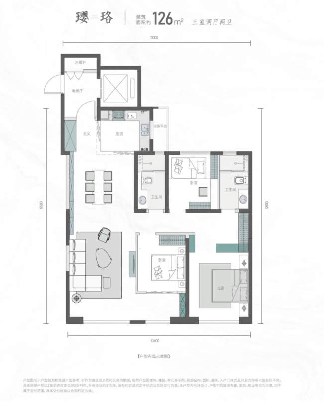 主卧面宽 3.2 米,朝南向,采光充足,摆放 1.8 米大床和双开门衣柜后仍有充足活动空间,搭配全景飘窗,不仅增加了使用空间,还能让业主在睡前醒来都能欣赏到窗外的园林美景。次卧面宽 2.8 米,同样朝南向,采光良好,可根据需求布置成儿童房或客房,儿童房放置 1.2 米床和书桌,满足孩子的学习和休息需求;客房则能为亲友来访提供舒适的居住空间。
