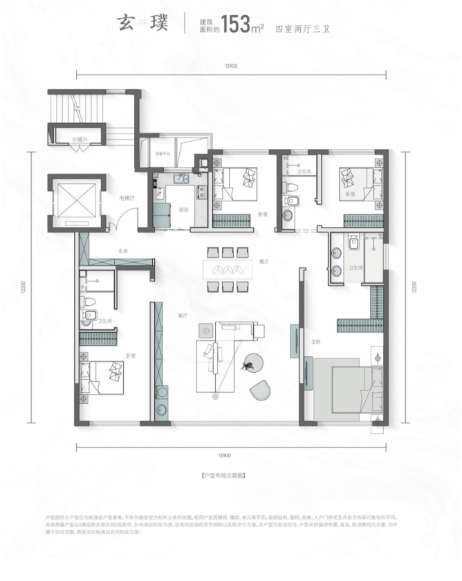 豪华四居户型是金投天宝府的高端产品,专为追求高品质生活的大家庭和高端改善型购房者打造,以 “奢华空间、全能功能、尊贵体验” 为设计核心,彰显高端人居的品质与格调。户型南北通透,全明设计,空间尺度阔绰,每个区域都能拥有极佳的采光和通风效果,让居家生活充满舒适与惬意。