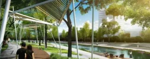公园以有氧运动林带、活力运动带、滨水景观带、休闲健身带和中心湖面构成“四带一心”的空间结构。