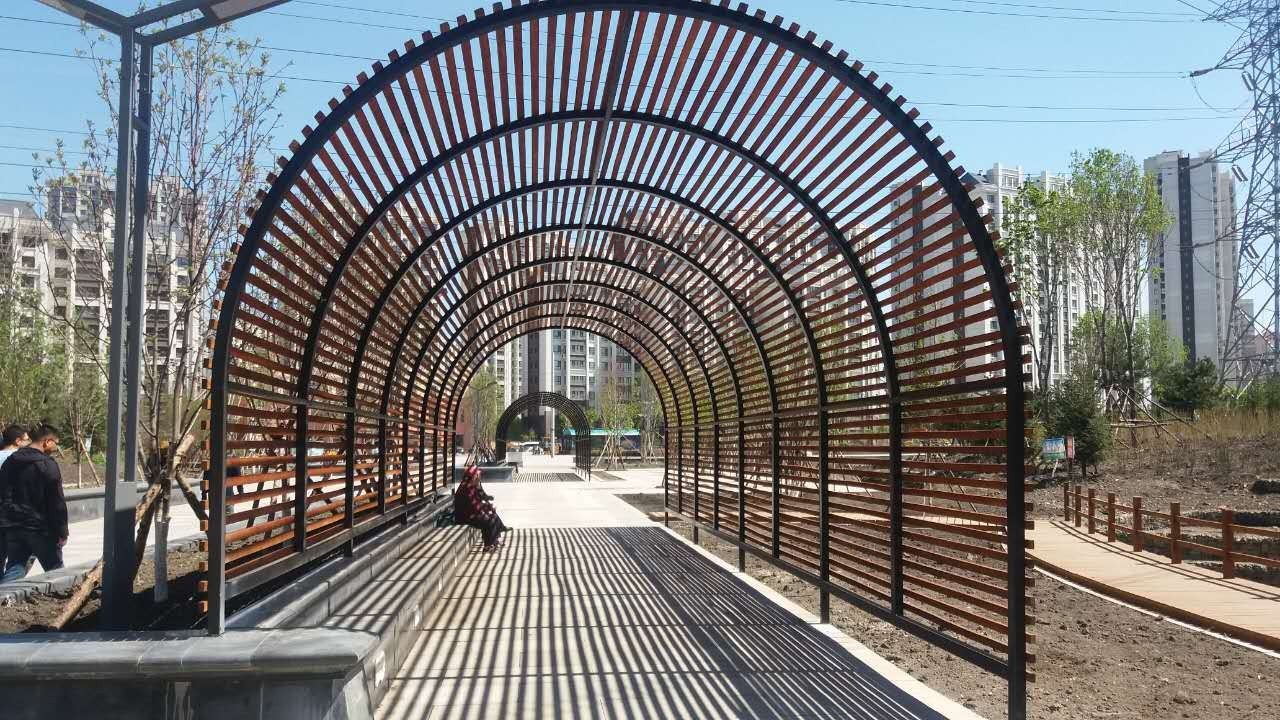 截至目前,已栽植树木1.44万株,4栋建筑的房屋土建工程基本完工,全园道路、停车场及广场基本修成,路边座椅及休息亭廊基本建成,完成海绵工程浅排管的铺设及连接井的修砌,基本完成照明、监控、给排水、供电、供暖等配套工程。