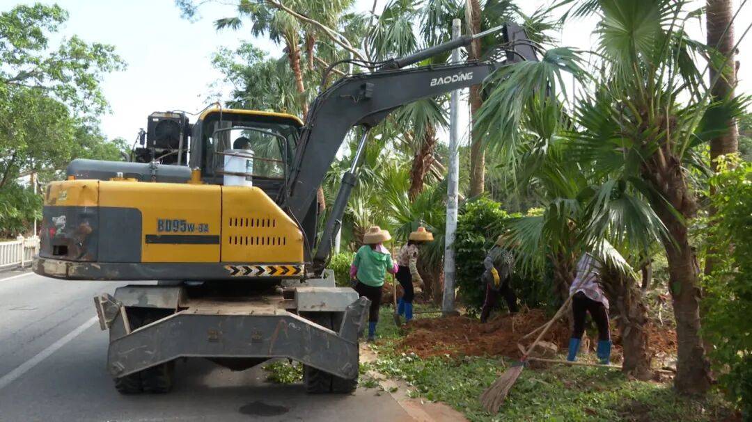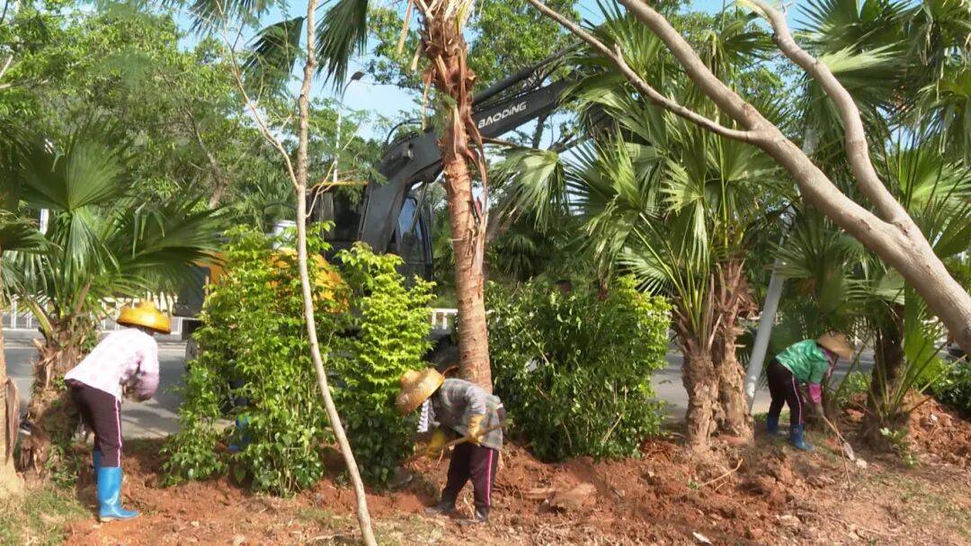 在推进绿化树木枯枝残枝清理的同时,该中心同步开展绿化树木补种修复工作。国道G234岛西路段被台风吹断的受损树木已全部移除,但道路绿化出现多处缺口,严重影响道路整体美观度。记者在现场了解到,市政工人正将高度1.5米的绿宝树树苗有序补种至缺口位置。